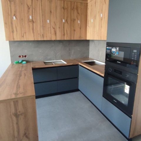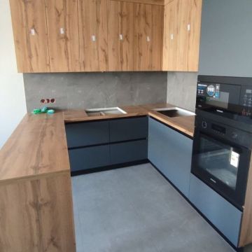 Отличная кухня со столешницей из компакт плиты изготовлена и установлена нашей командой на улице Лидской для дружной и молодой семьи.